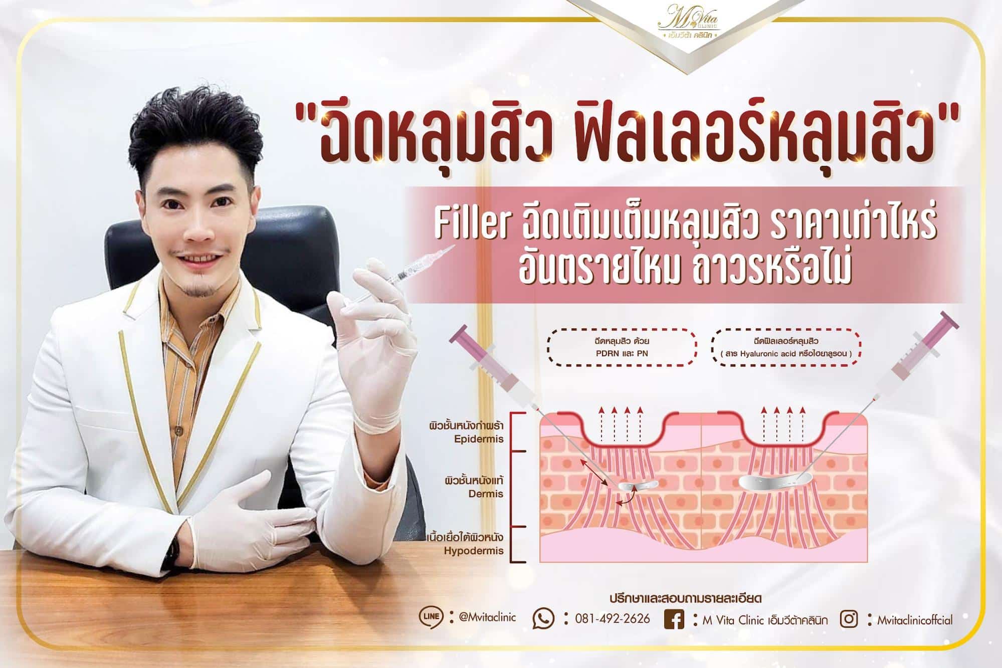 ฉีดหลุมสิวและฟิลเลอร์หลุมสิวที่เอ็มวีต้าคลินิก มีทั้ง 2 แบบการรักษาครับผม รายละเอียดราคา โปรโมชั่น มีดังนี้