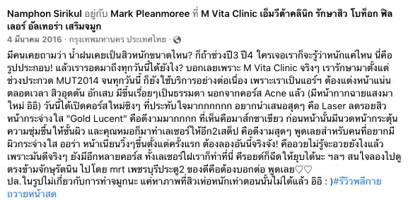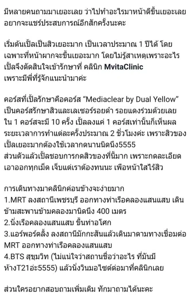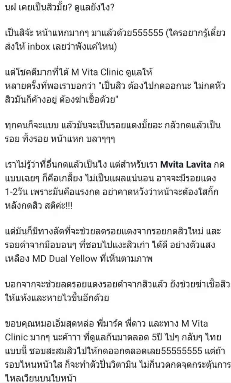 รีวิวจากคุณนุ่นสุดสวย การันตีคุณภาพ การรักษาสิวและรอย ต้อง ที่ เอ็มวีต้า คลินิก ครับ