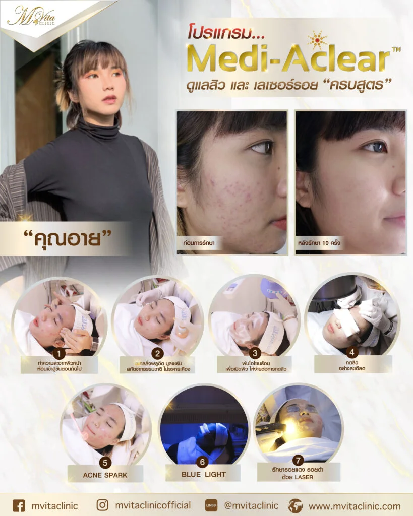 โปรแกรมรักษาสิว ต่อมาที่มีผลลัพธ์ชัดเจนประทับใจคนไข้ของคุณหมอ และได้มีกันบอกต่อการรักษาที่ได้ผล นั่นก็คือ Medi-Aclear